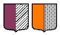 · bruin (weergave: verticale arcering plus diagonale arcering links onder – rechts boven)