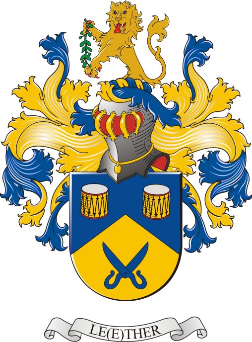 Er zijn in de tijd dat ik onderzoek naar onze familie doe sinds 1995 maar twee momenten geweest waarbij sprake was van een vermeend Lether familiewapen. Een familielid bracht een wapen in met daarin veel Griekse zuilen (er stond geen familienaam bij) en een tweede was van wijlen mijn vader die dacht -volgens zijn herinnering- dat het er zo (links) zou hebben uitgezien. Hij herinnerde zich geen kleuren. Jaren later werd dit wapen ter opfleuring gewijzigd door het inwisselen van één roos (of lelie) en één molen door er een leeuw uit het wapen van de stad Brummen en een Nassause leeuw in op te nemen (plekken waar onze familie vandaan komt) en e.e.a. van kleur te voorzien (wapen midden).